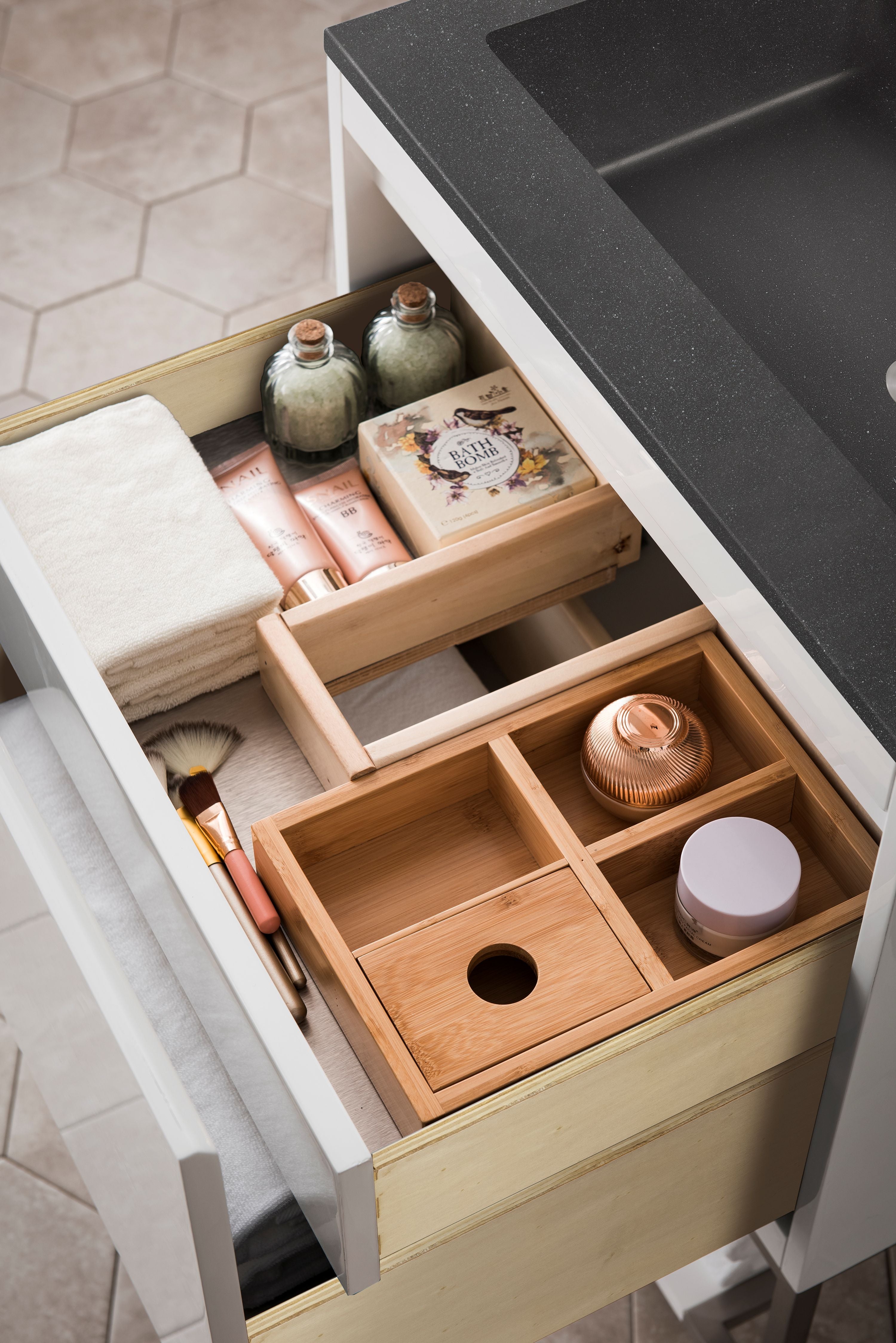 - Soft-close undermount drawer glides